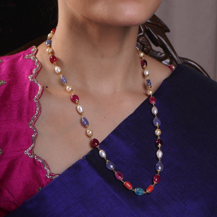 Adorn yourself with the Ratna Mukut Chain, featuring vibrant color beads and elegant gold crowning. This exquisite piece blends regal design with a touch of modern flair, perfect for adding...