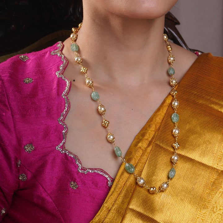 Elevate your style with our Shobha Ball Chain, featuring alternating gold and green bead balls. This elegant piece adds a touch of sophistication to any outfit, perfect for those who...