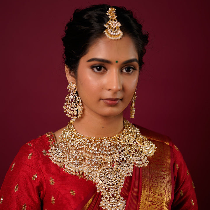 The Grandeur of Tradition: Mossanite Polki Bridal Necklace and Earring Set