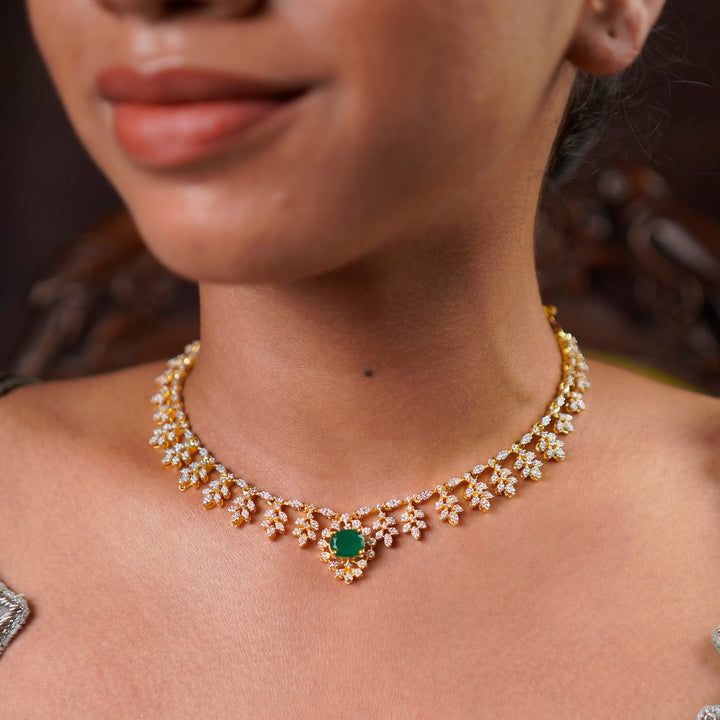 Subtle Elegance: The Zircon (CZ) Collar Necklace Discover the perfect blend of subtle glamour and traditional appeal with this beautiful Zircon (CZ) Collar Necklace. Designed to sit gracefully at the base...