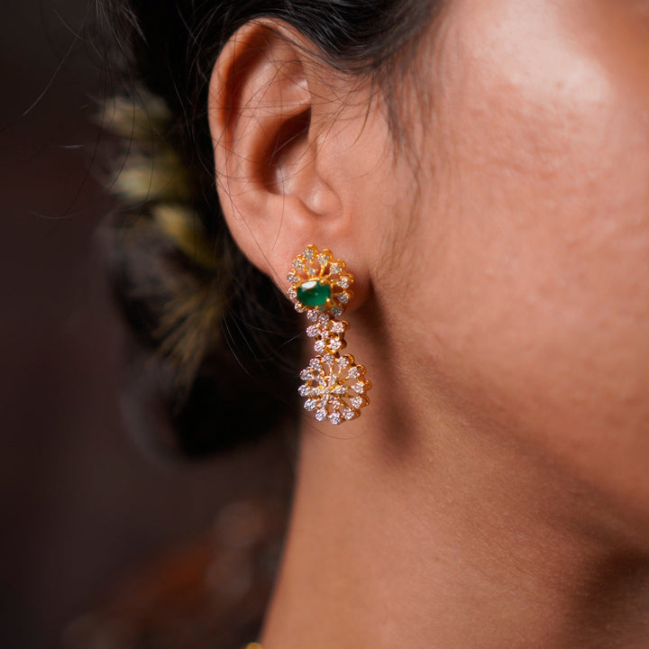 Sparkling CZ & Green Stone Solitaire Necklace with earrings