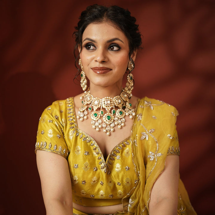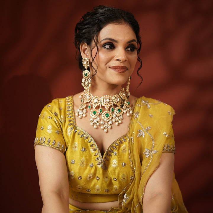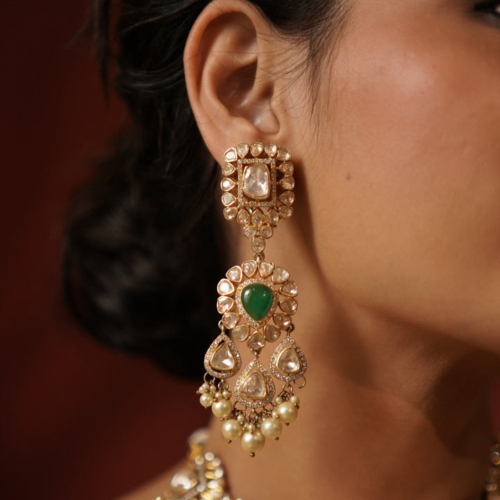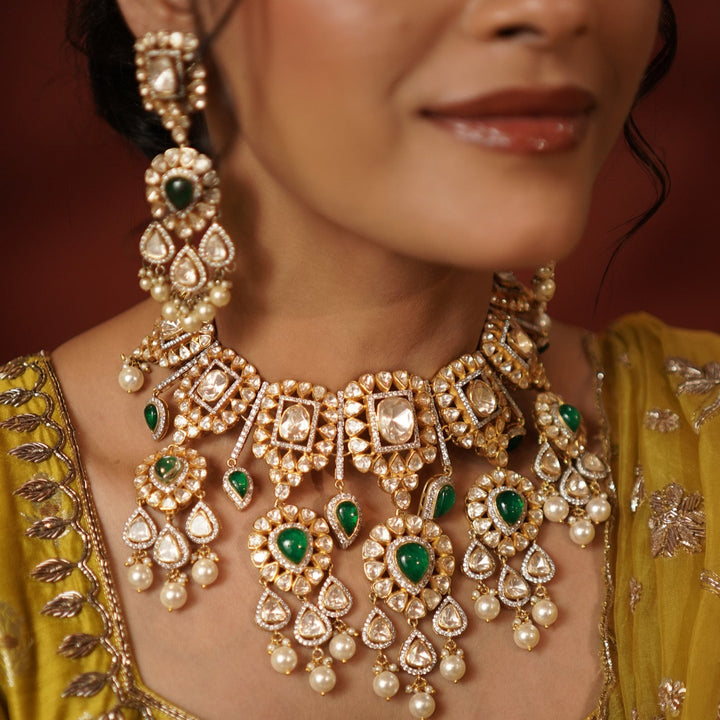 Discover unparalleled grandeur with our breathtaking Moissanite Polki Necklace Set, a true masterpiece of traditional Indian craftsmanship. This magnificent set features a radiant necklace adorned with dazzling central big Moissanite...