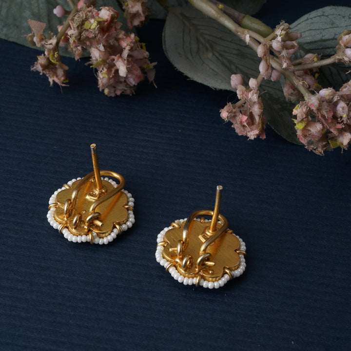 Bloom with timeless elegance in these Emerald Ruby Kundan Flower Stud Earrings, handcrafted in 92.5 sterling silver with a luxurious 22ct gold polish. Designed in a delicate floral motif, they...
