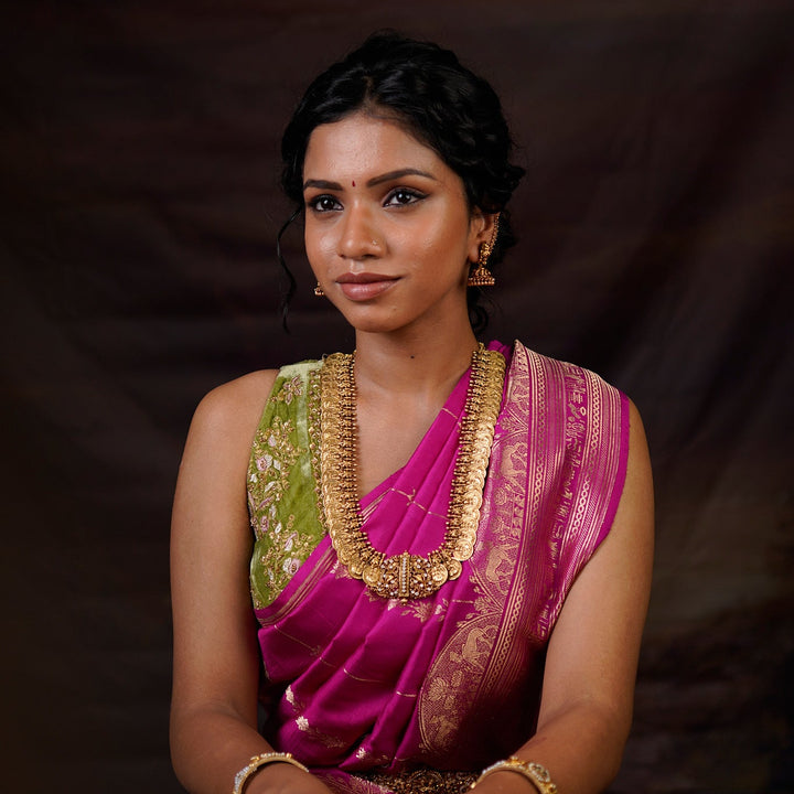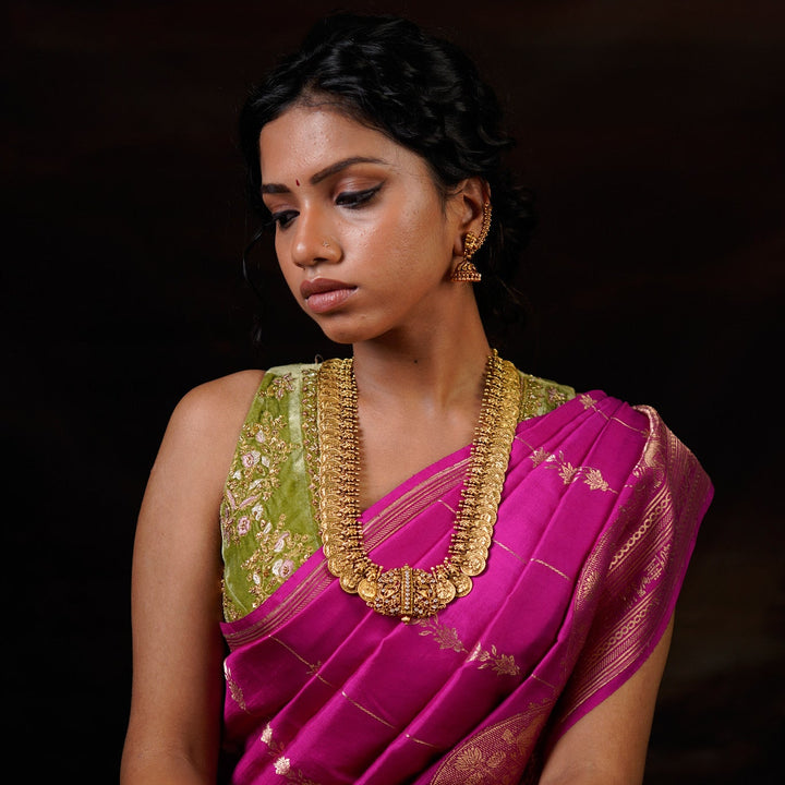 Divine Heritage: The Traditional Kaasu Maala Necklace Embrace the sacred and regal beauty of the Traditional Kaasu Maala (Kasulaperu), a timeless South Indian long necklace. This heritage piece is historically...