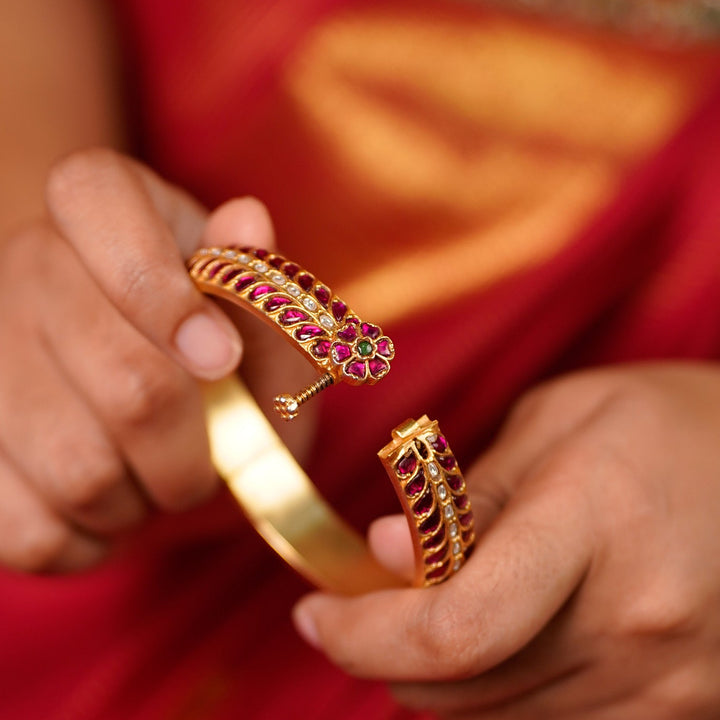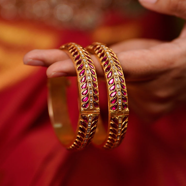 Aaravi Ruby Kundan Floral Bangles
