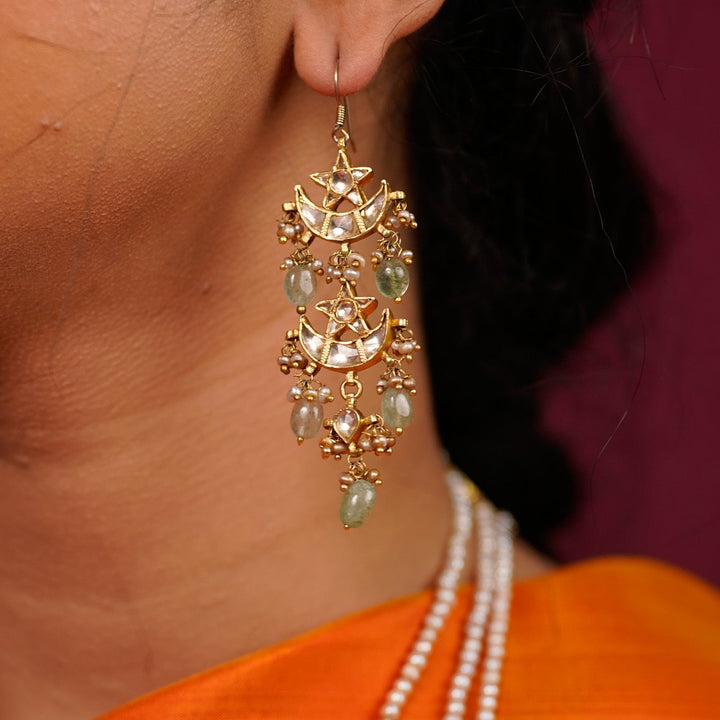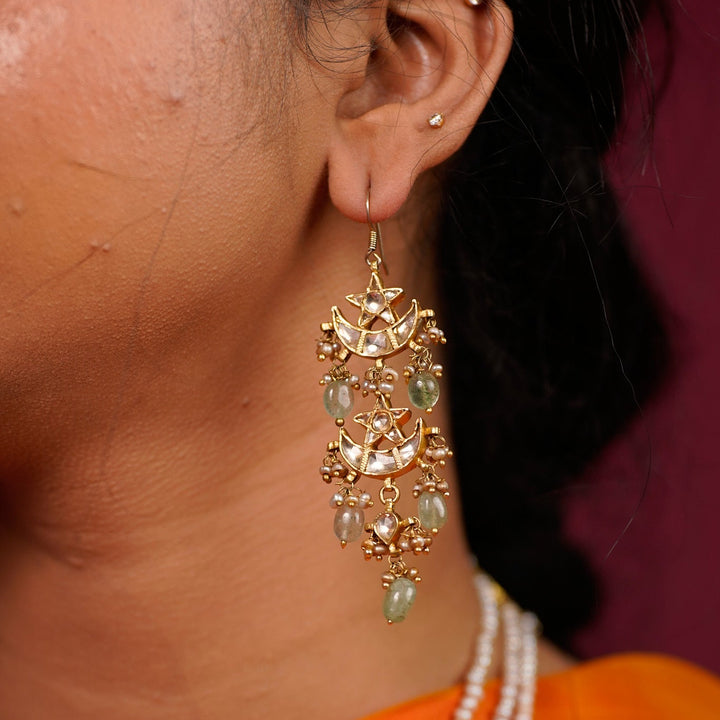 Reach for the stars with the exquisite Ziya Crescent Chandbalis. These captivating chandelier earrings feature a gorgeous, traditional design with a modern, elongated drop, making them a stunning statement piece....
