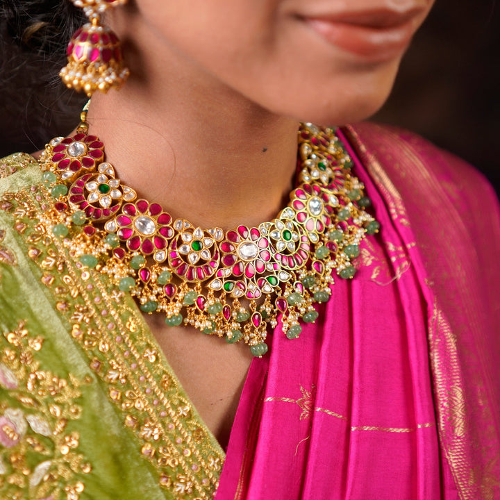 Royal Kundan Flower Choker Necklace Jadau Style Bridal Jewellery