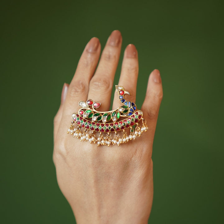 Mayura Kundan Pearl Ring