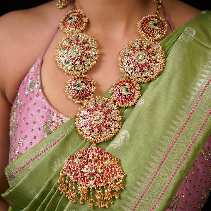 Magnificent Haaram Floral Kundan Mala with Ruby & Pearl Drops