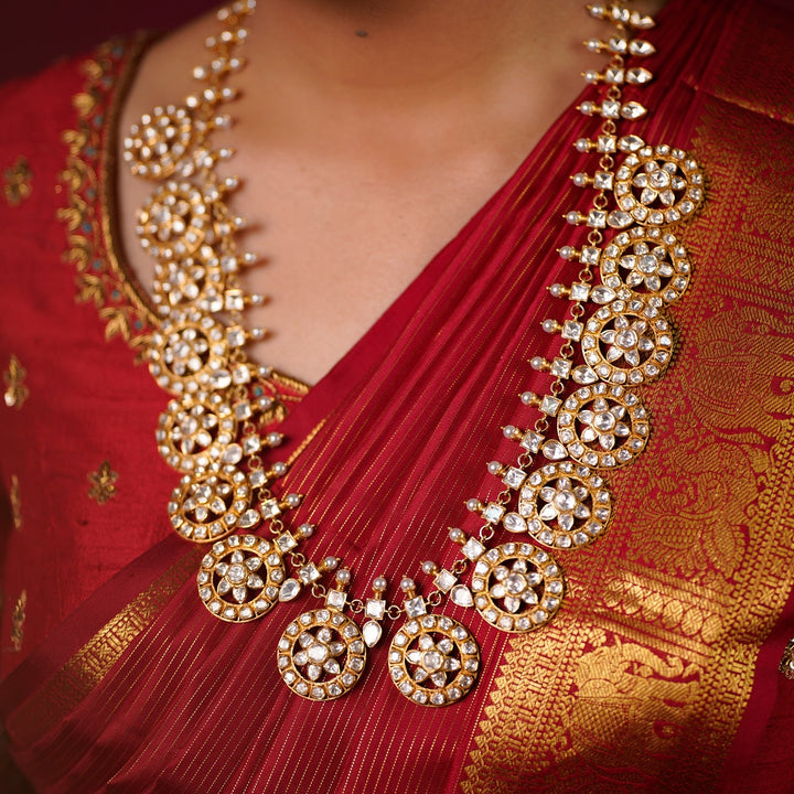 Adorn yourself in timeless elegance with this breathtaking Mossanite Bottu Maala. This long necklace is a masterpiece of traditional craftsmanship, meticulously handcrafted in durable 92.5 Sterling Silver and finished with...