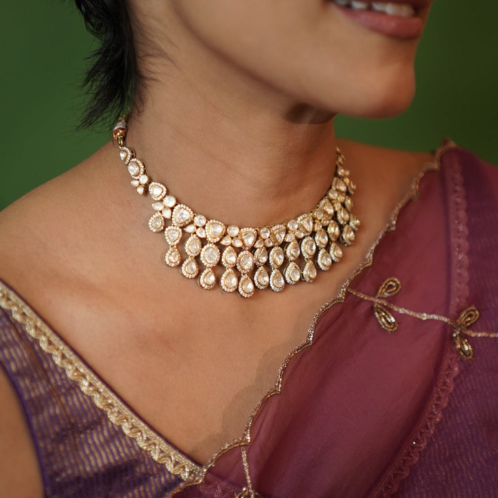 Naamya Moissanite Choker – A dazzling moissanite-studded choker that blends modern brilliance with timeless elegance. Perfect for weddings and grand celebrations.