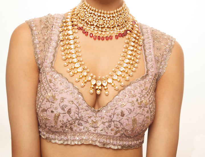 The Sitara Moissanite Long Haram is a regal expression of traditional opulence and modern brilliance. Set in a radiant gold finish, this necklace features alternating clusters of rose-cut moissanite stones...