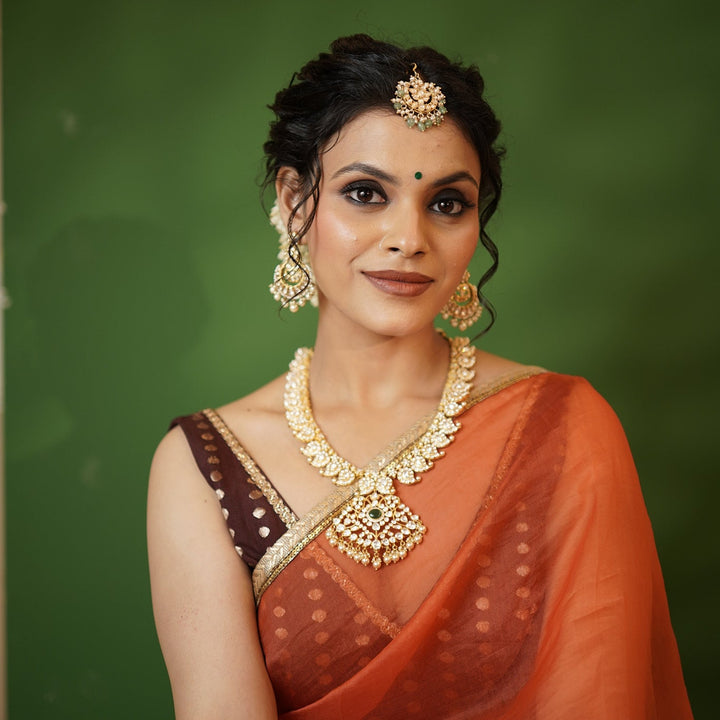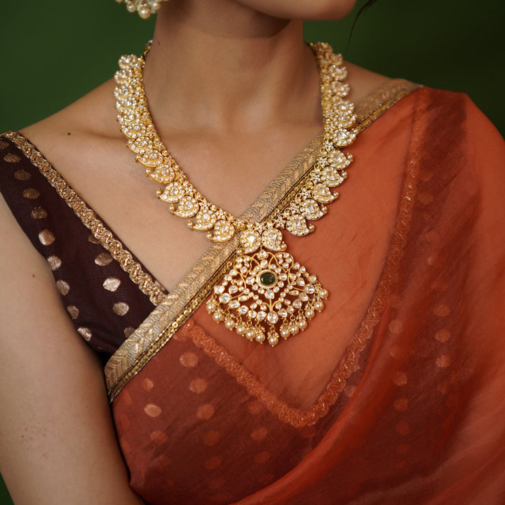 Crafted in pure 92.5 silver and finished with a rich 22ct gold polish, the Mayura Mango Polki Necklace is a true heritage piece. Featuring classic mango motifs adorned with radiant...