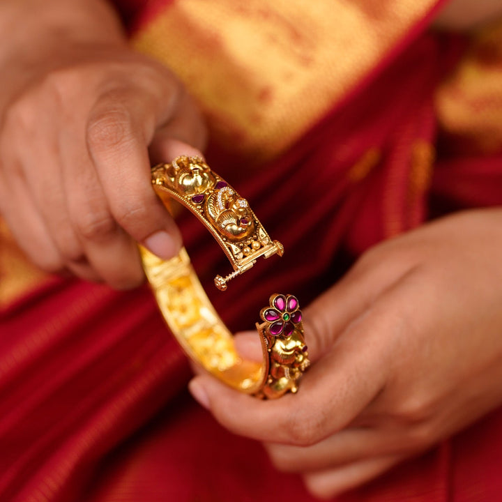 Celebrate tradition with this breathtaking pair of Nakshi bangles. Each piece is a testament to timeless Indian craftsmanship, intricately handcrafted in 92.5 sterling silver and finished with a lavish, durable...