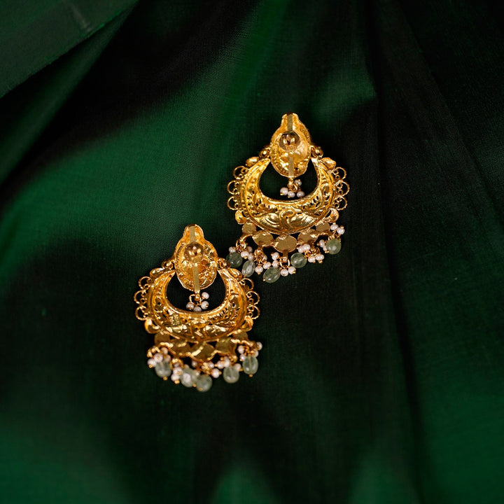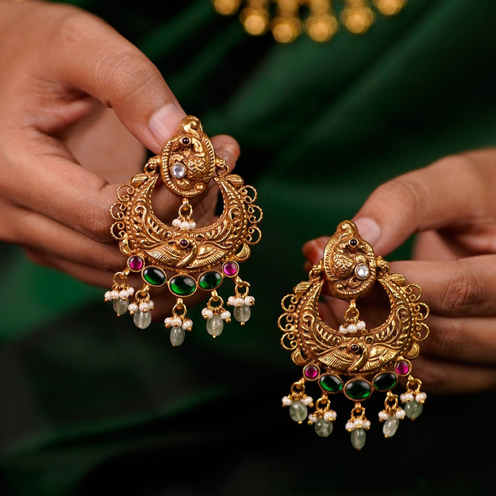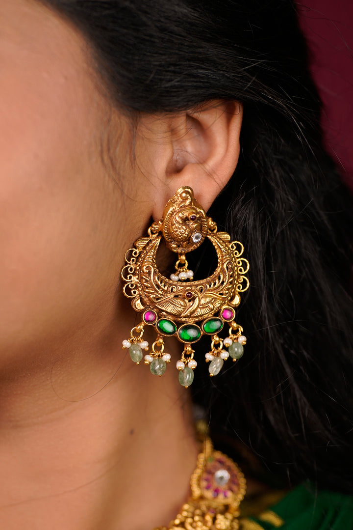 Peacock Nakshi Chandbali with Emerald and Pearl Drops