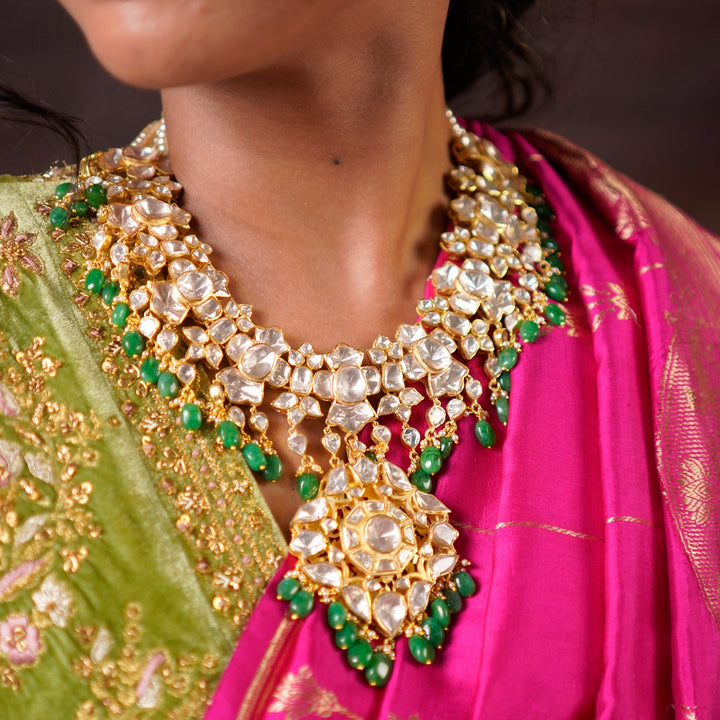 Command attention with this truly magnificent Heirloom-Quality Choker Set. The necklace is crafted from premium 92.5 Sterling Silver and boasts a rich 22-carat gold antique polish. It features a stunning...