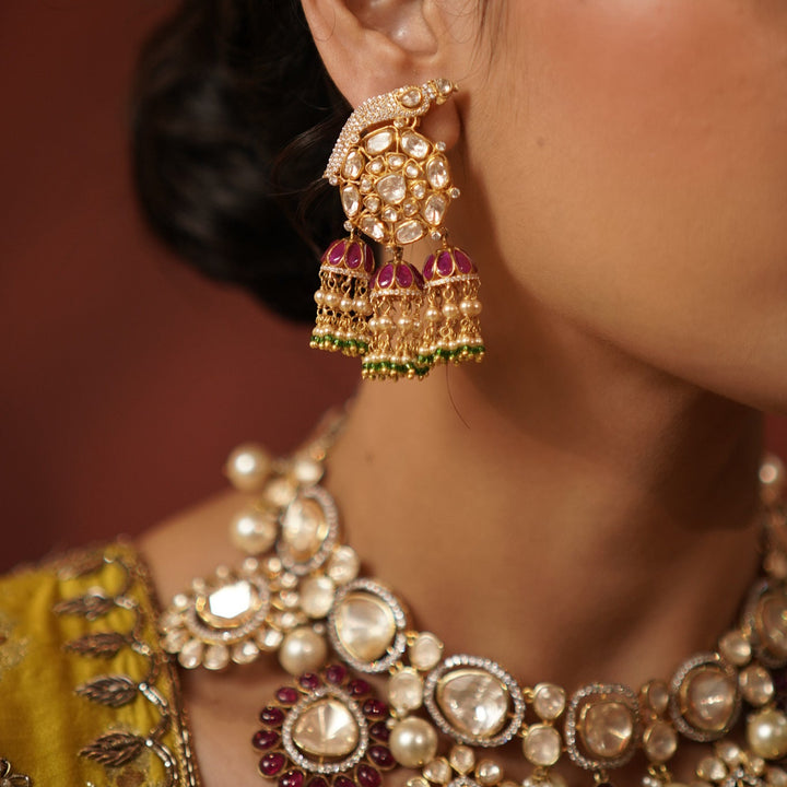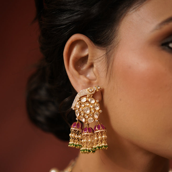 Adorn your ears with our magnificent Bird & Flower Motif Jhumkas, a true embodiment of traditional artistry and modern sparkle. These exquisite earrings feature intricately crafted bird and flower motifs,...