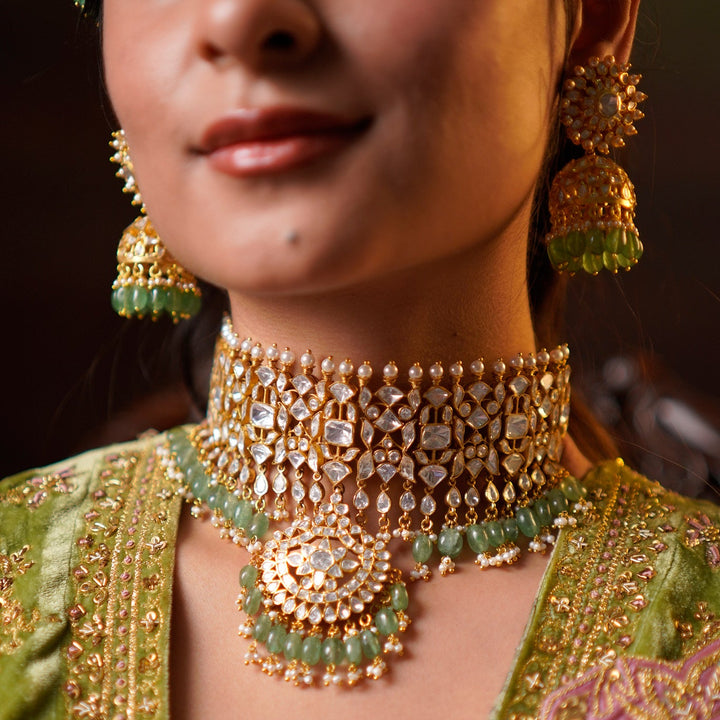 Grand Polki Choker & Pendant Set with Emerald Drops