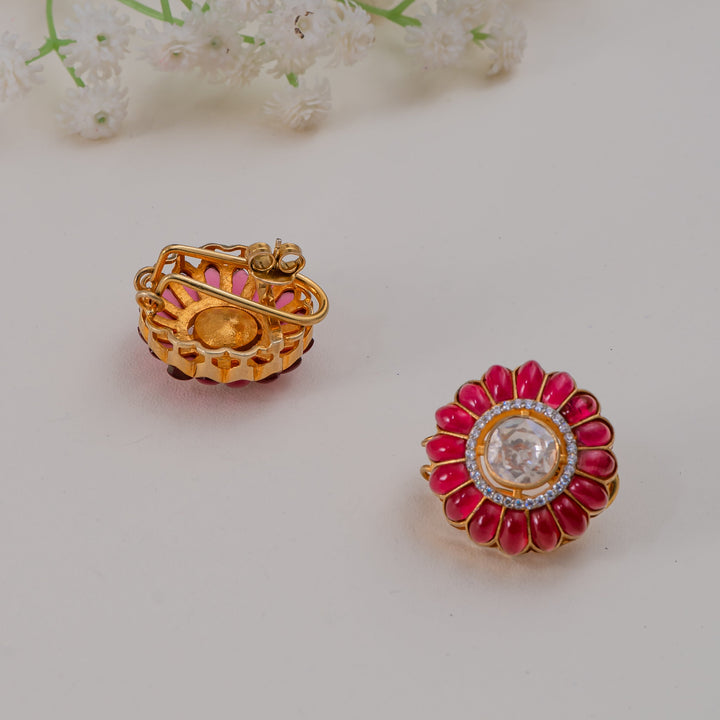 Earrings with Ruby petals and zircon halo
