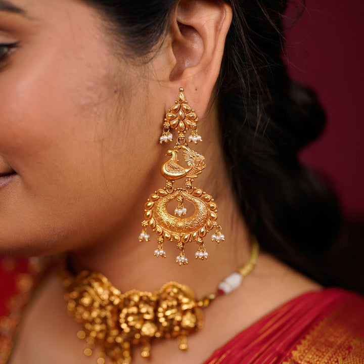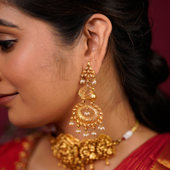 "Step into a realm of traditional elegance with these exquisite Temple Hangings (Jhumkas/Earrings). A true embodiment of South Indian jewelry heritage, these pieces are meticulously crafted from 92.5 Sterling Silver,...