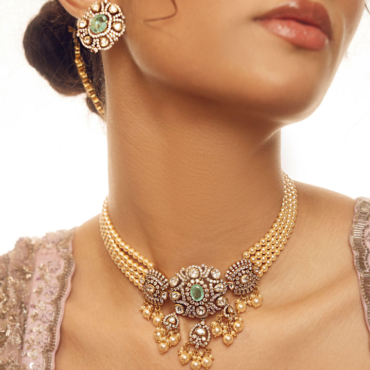 Elevate your elegance with the Regal Blossom Victorian Choker, a masterpiece of vintage artistry. Crafted with lustrous pearls and intricately detailed floral motifs, this statement piece features a central bloom adorned...