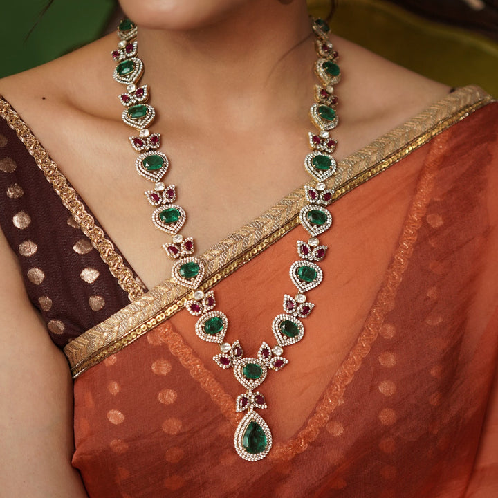 Diya's Emerald Beauty: Featuring vibrant green stones and meticulous craftsmanship, this necklace is a stunning Victorian piece.