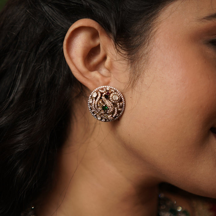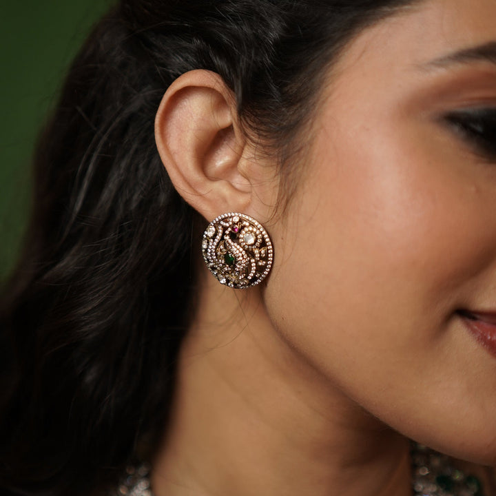 Adorn your ears with our exquisite Peacock Motif Stud Earrings, a harmonious blend of traditional artistry and captivating sparkle. These stunning studs feature intricate peacock motifs, symbolizing beauty and grace,...