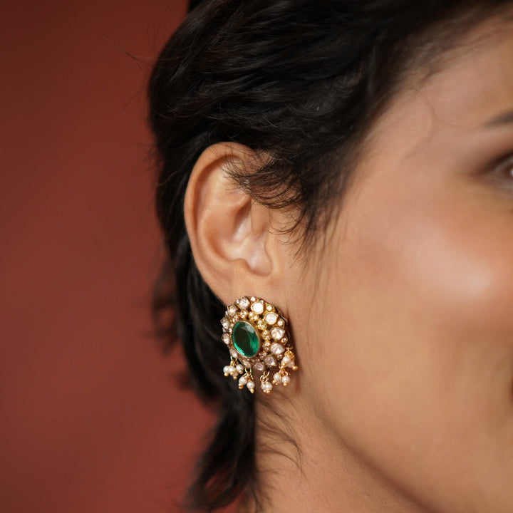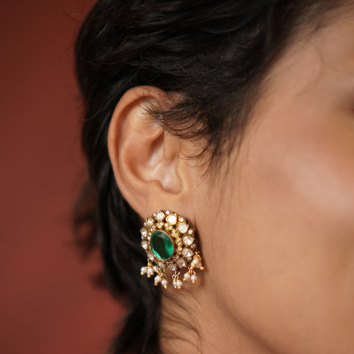 Discover the timeless elegance of our Athulya Victorian Earrings, a masterpiece crafted to perfection. These exquisite studs feature a captivating flower shape design, with a vibrant centre emerald stone that...