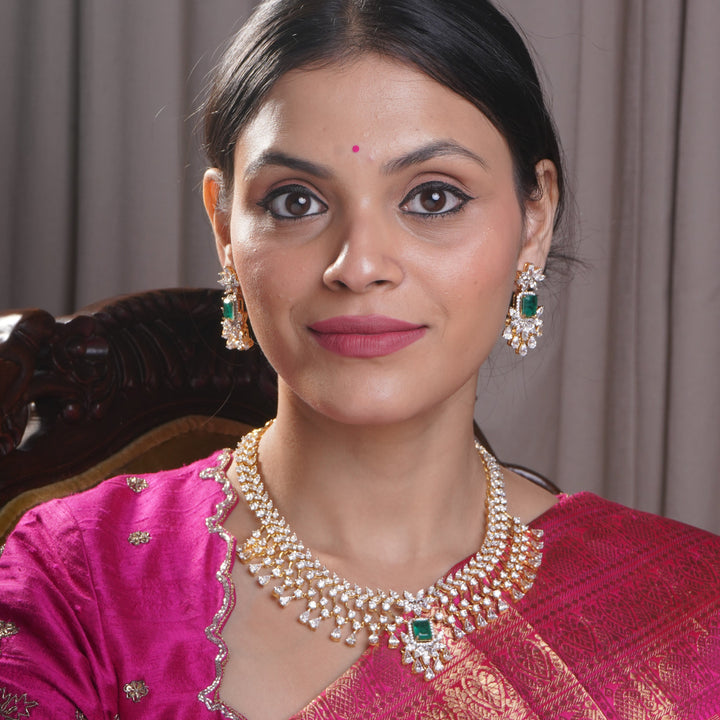 Ira Zircon Short Necklace With Earrings